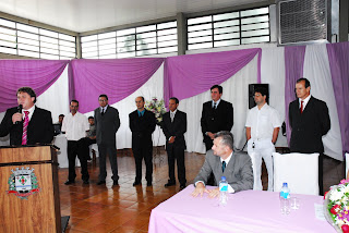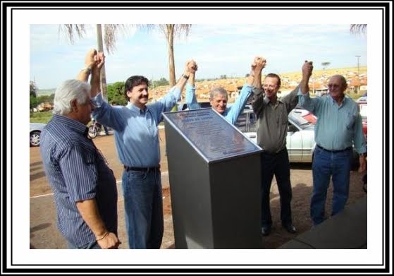 Vereador Maírton Piva; Pres. da Câmara Vereador Mário Pilegi Júnior; Ver. Aguinaldo Fernandes (sobrinho do Prefeito); Sra. Leny Gomes Gilglioli Fernandes e o Sr. Julio Ernesto Colla.